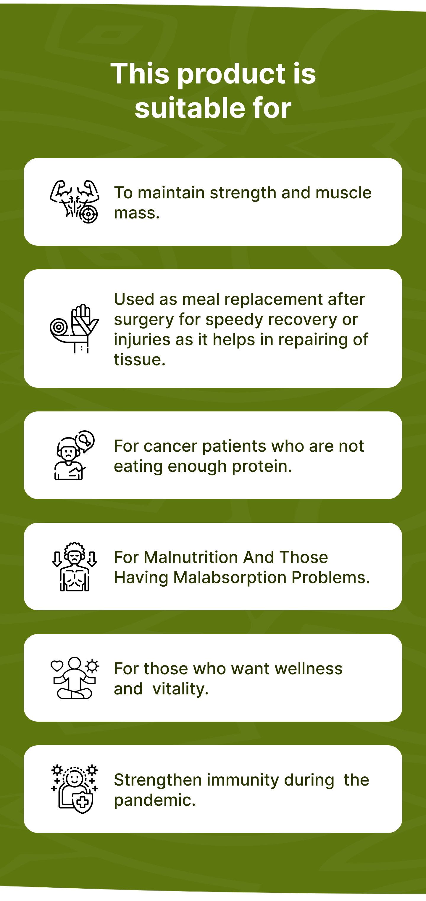 • Those who have health issues as recommended by the health practitioner. Can be taken during breakfast, tea time or before bed.