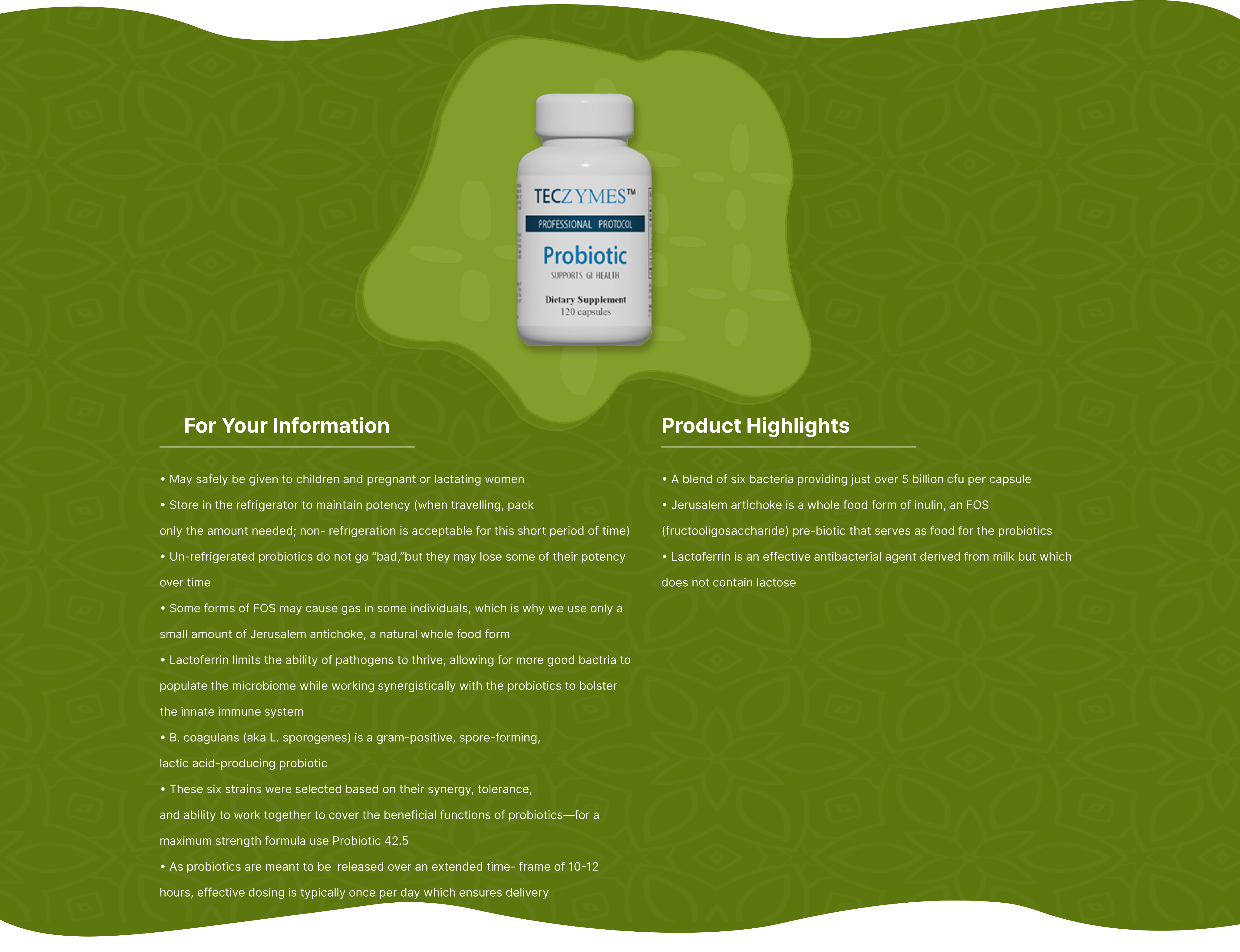 This is a blend of six bacteria common to the human GI tract. Formulated to mirror the proper ratios of these bacteria as found in the healthy GI tract and therefore maintain optimal flora to reduce gastrointestinal discomfort.