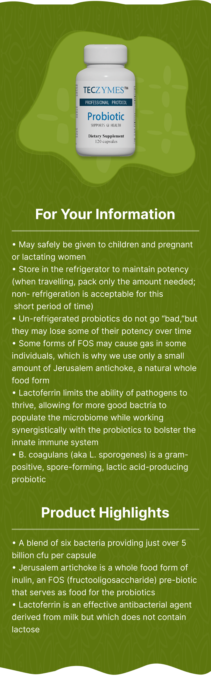 • May be taken with antibiotics to help maintain healthy balance (increase dosage as needed)